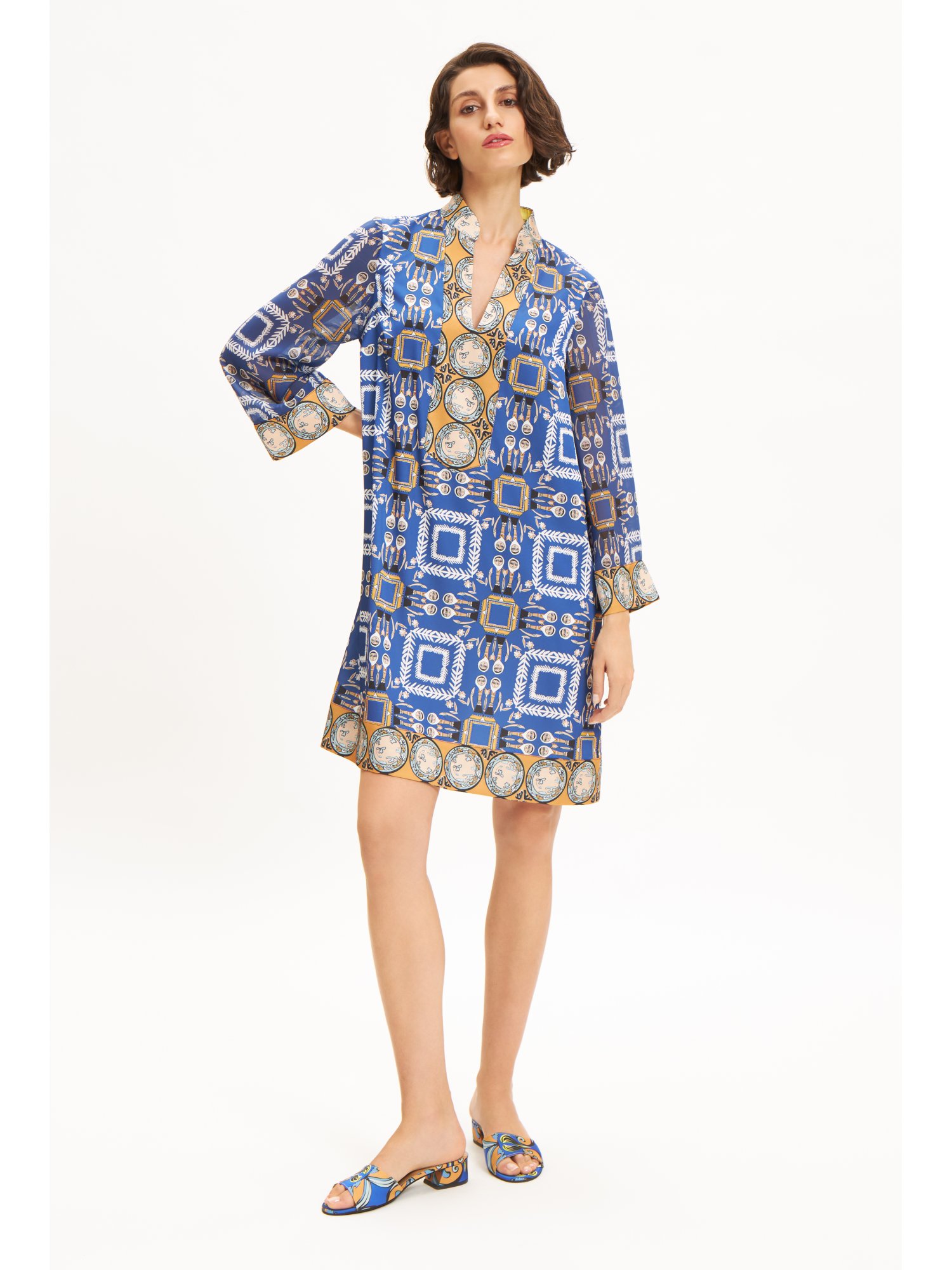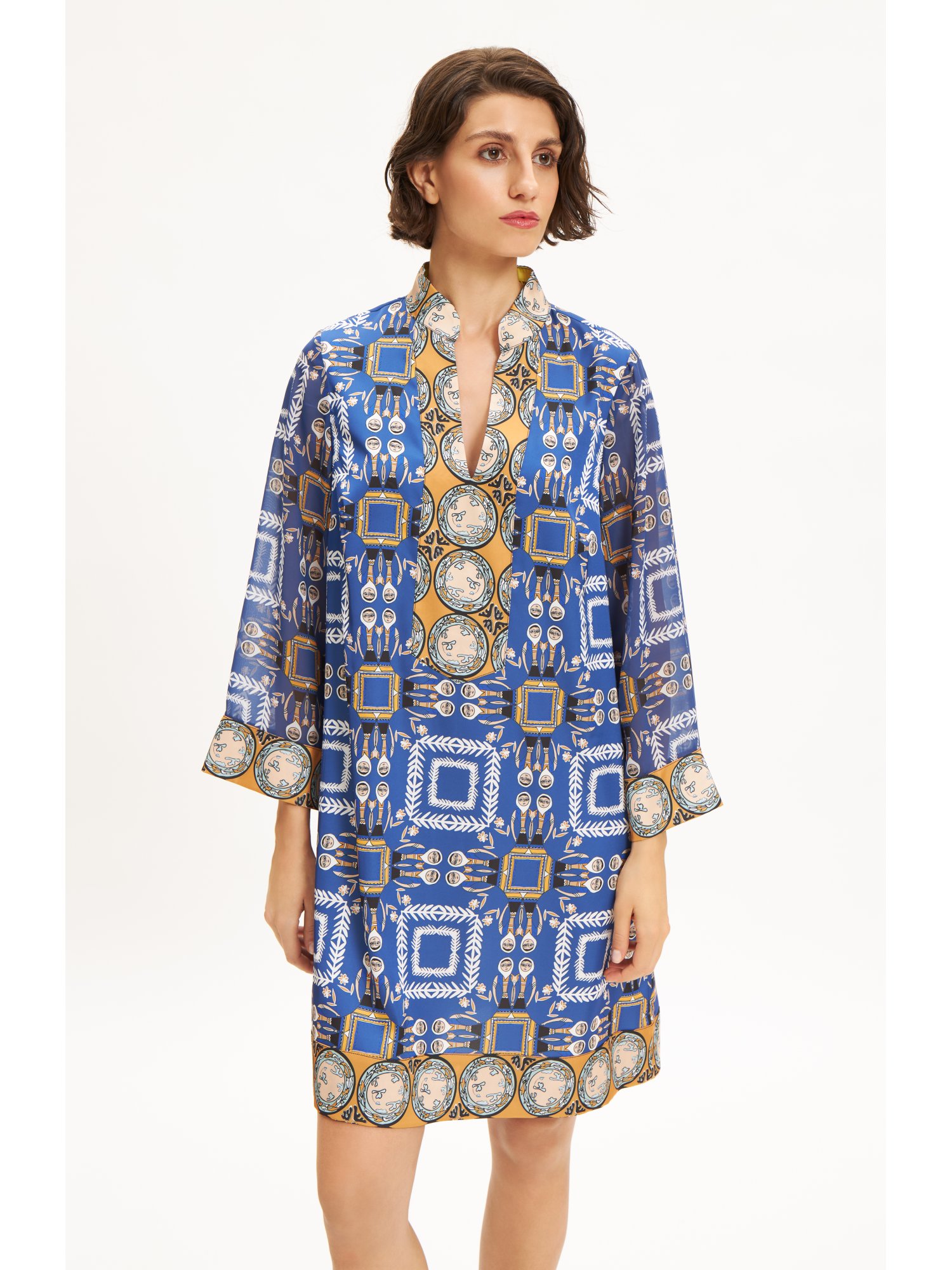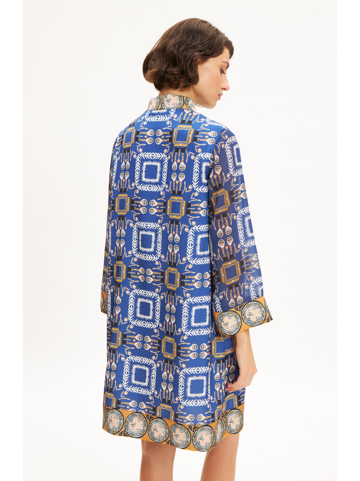 | Highlights | LONG LENGTH| KIMONO STYLE | BELT TIE | BUTTON FASTENING | STRAIGHT HEM| HANDMADE IN GREECE |