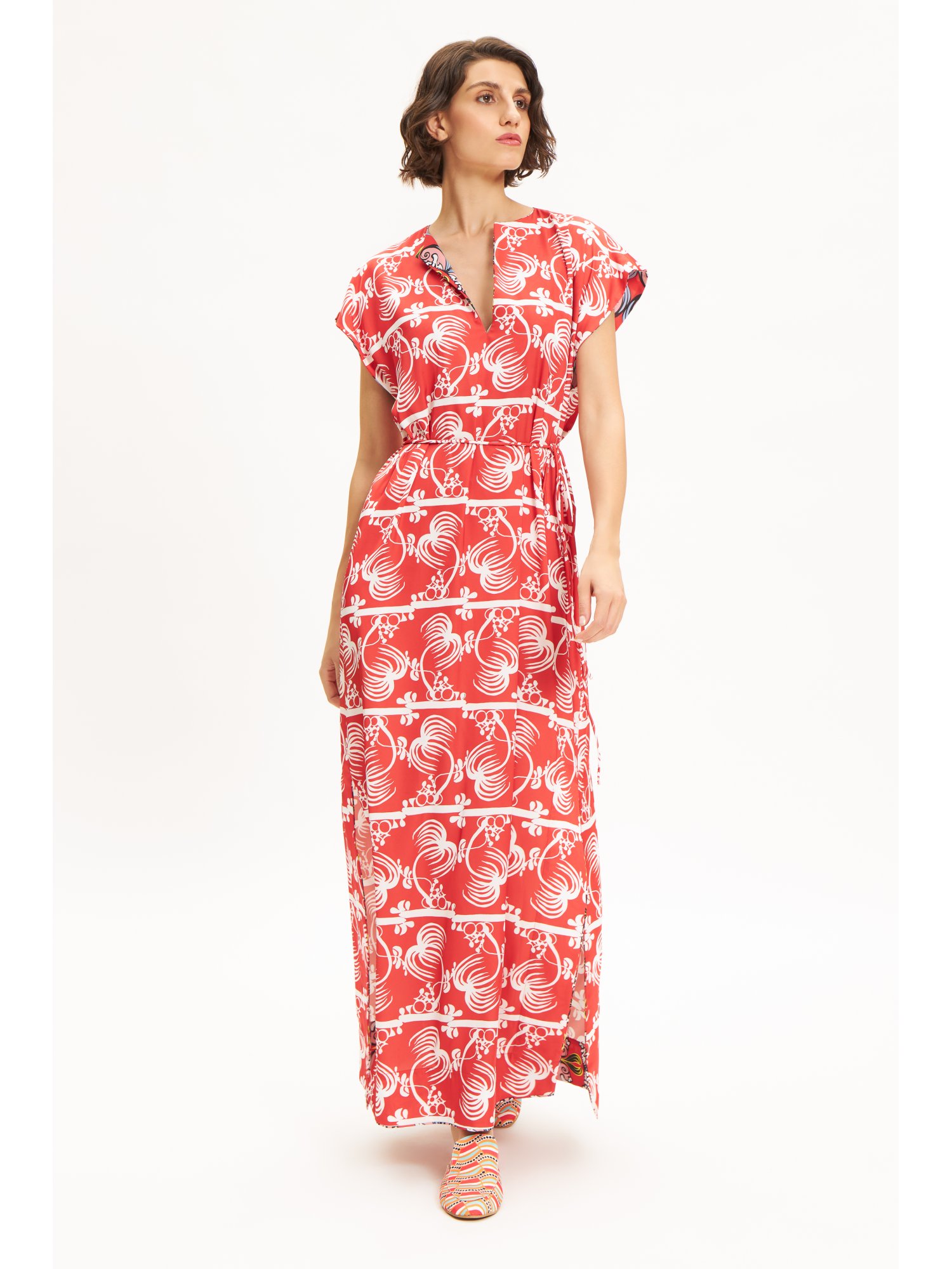 | Highlights | LONG LENGTH| KIMONO STYLE | BELT TIE | BUTTON FASTENING | STRAIGHT HEM| HANDMADE IN GREECE |