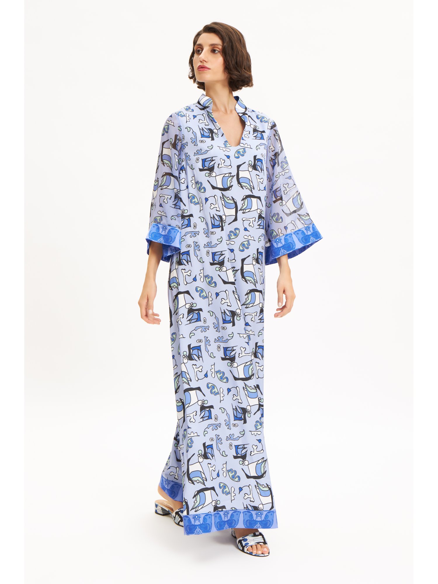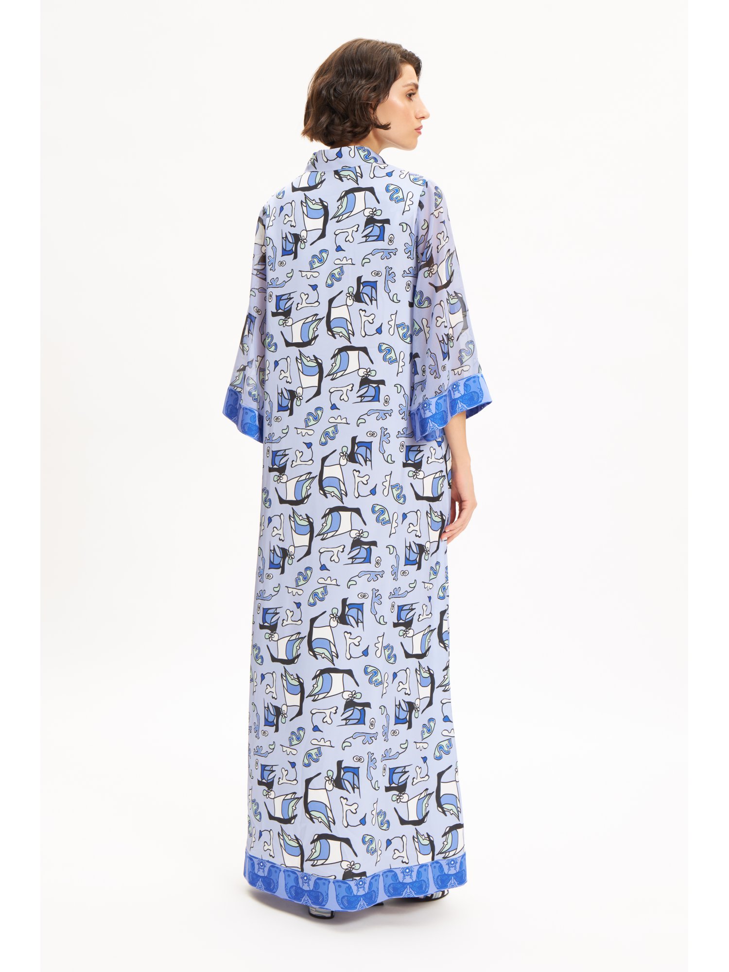 | Highlights | LONG LENGTH| KIMONO STYLE | BELT TIE | BUTTON FASTENING | STRAIGHT HEM| HANDMADE IN GREECE |