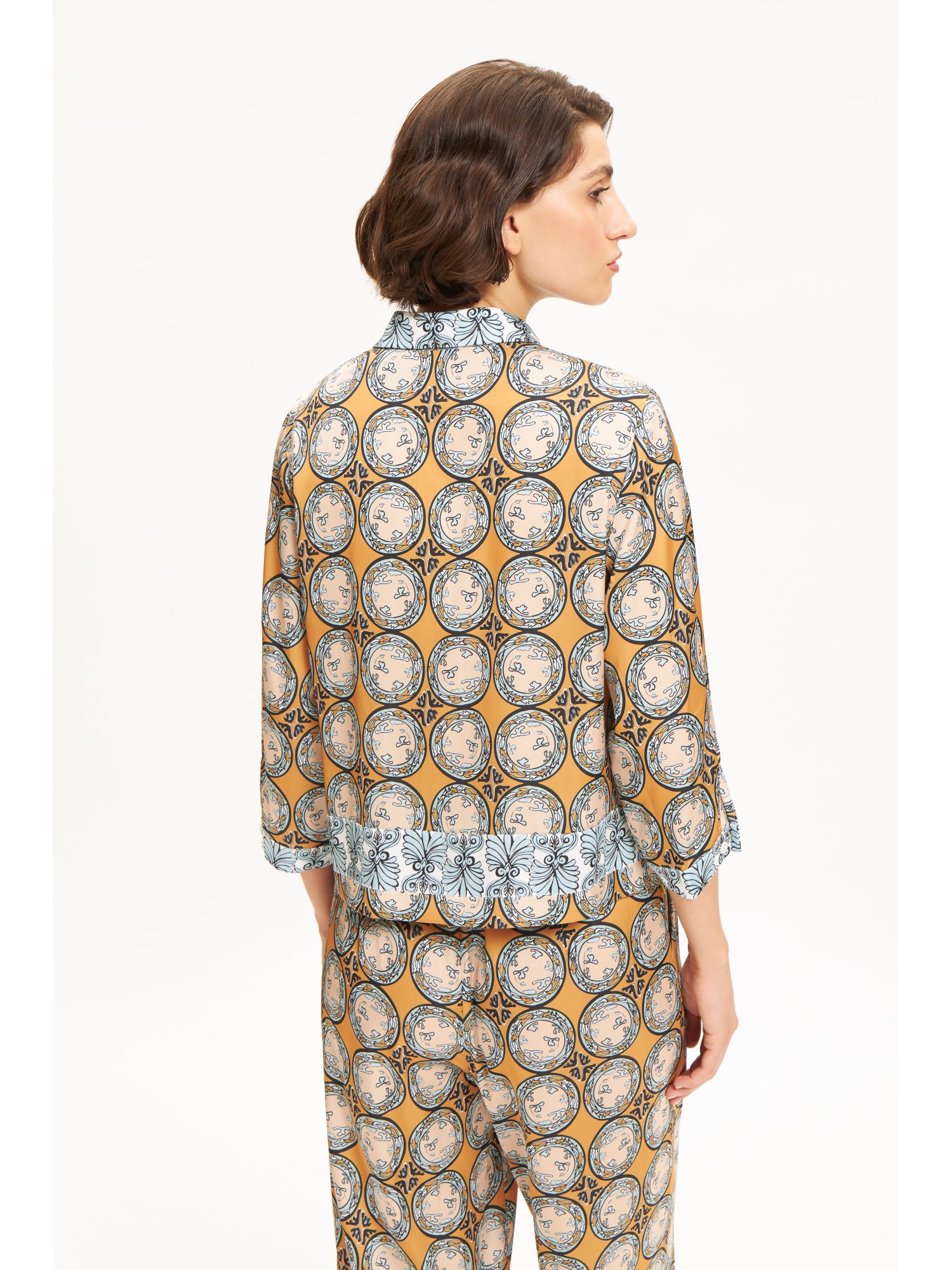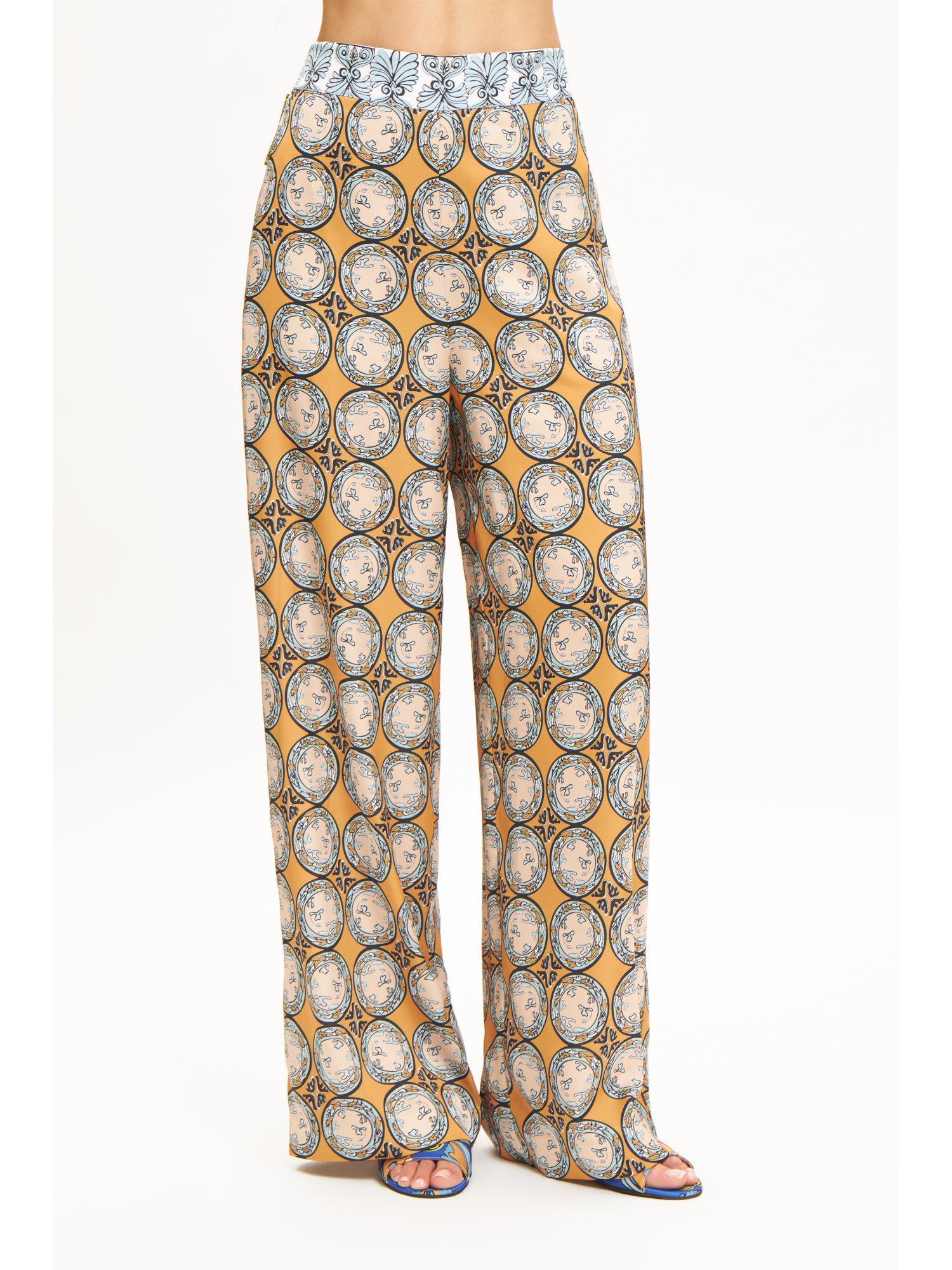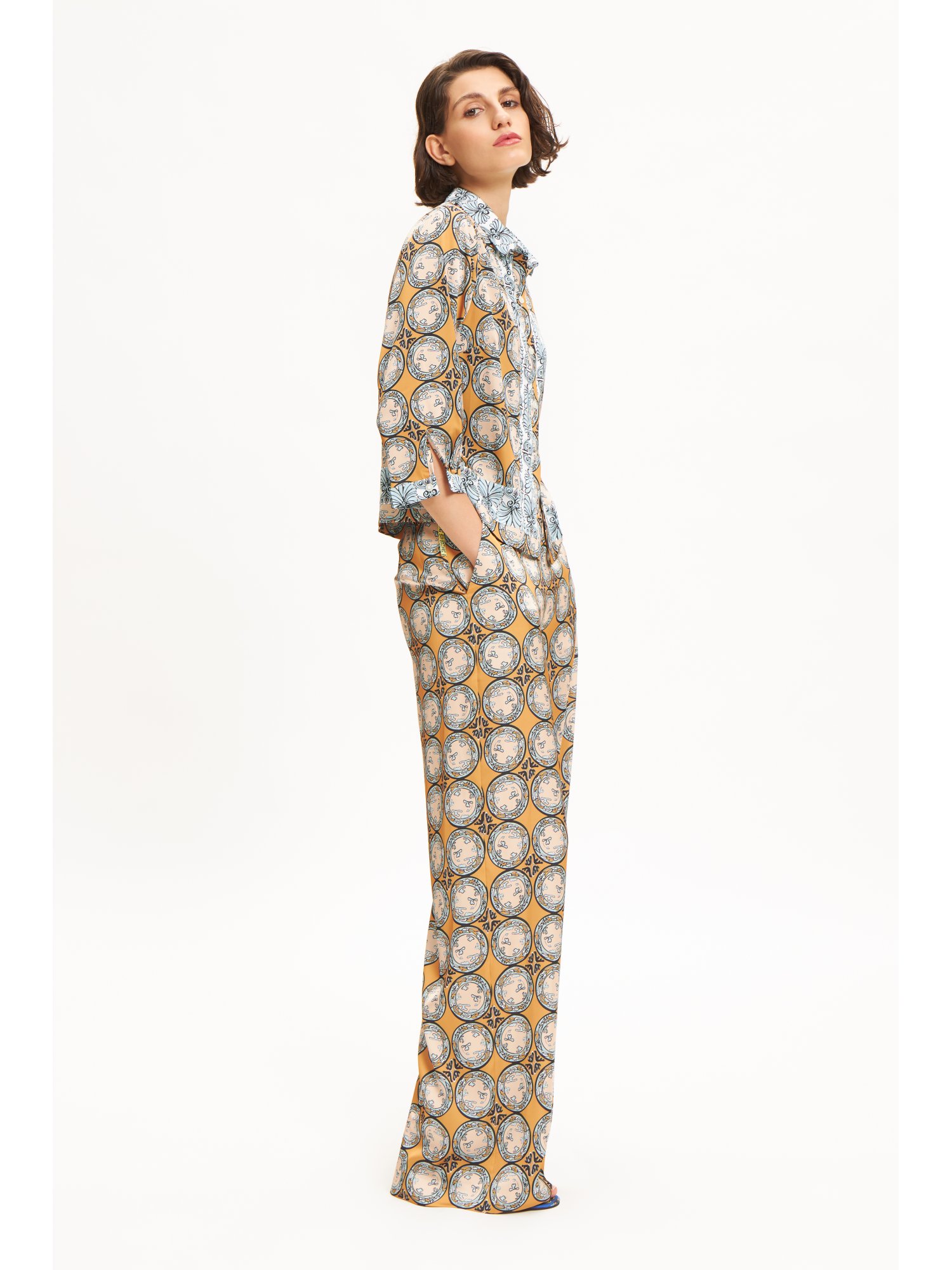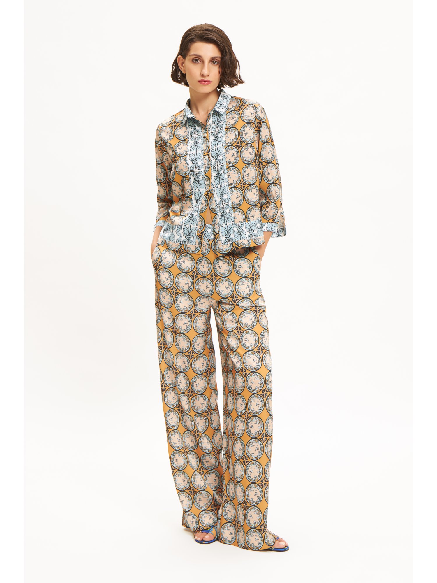 | Editor's notes | The epitome of easy to wear summer pants are the "Alos" pants. Featuring an elastic band waist, they will certainly embrace your body having a perfect fitwhile lengthening your silhouette with their straight wide line. They can be worn with the matching shirt or with your favourite tank top. |